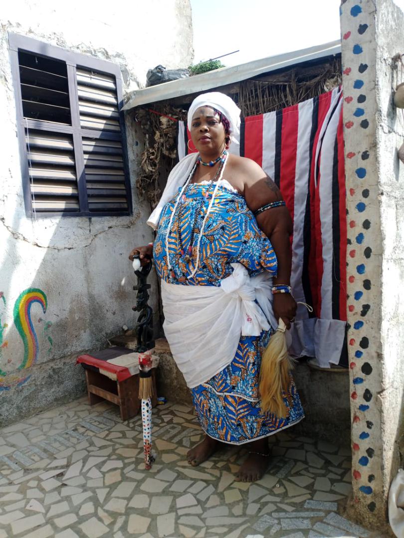 La pretresse Rhada Lokossi est la Présidente départementale de Borgou, (Parakou) de l'Association des Sages de la Culture Endogène et de la Médécine Traditionnelle du Benin.